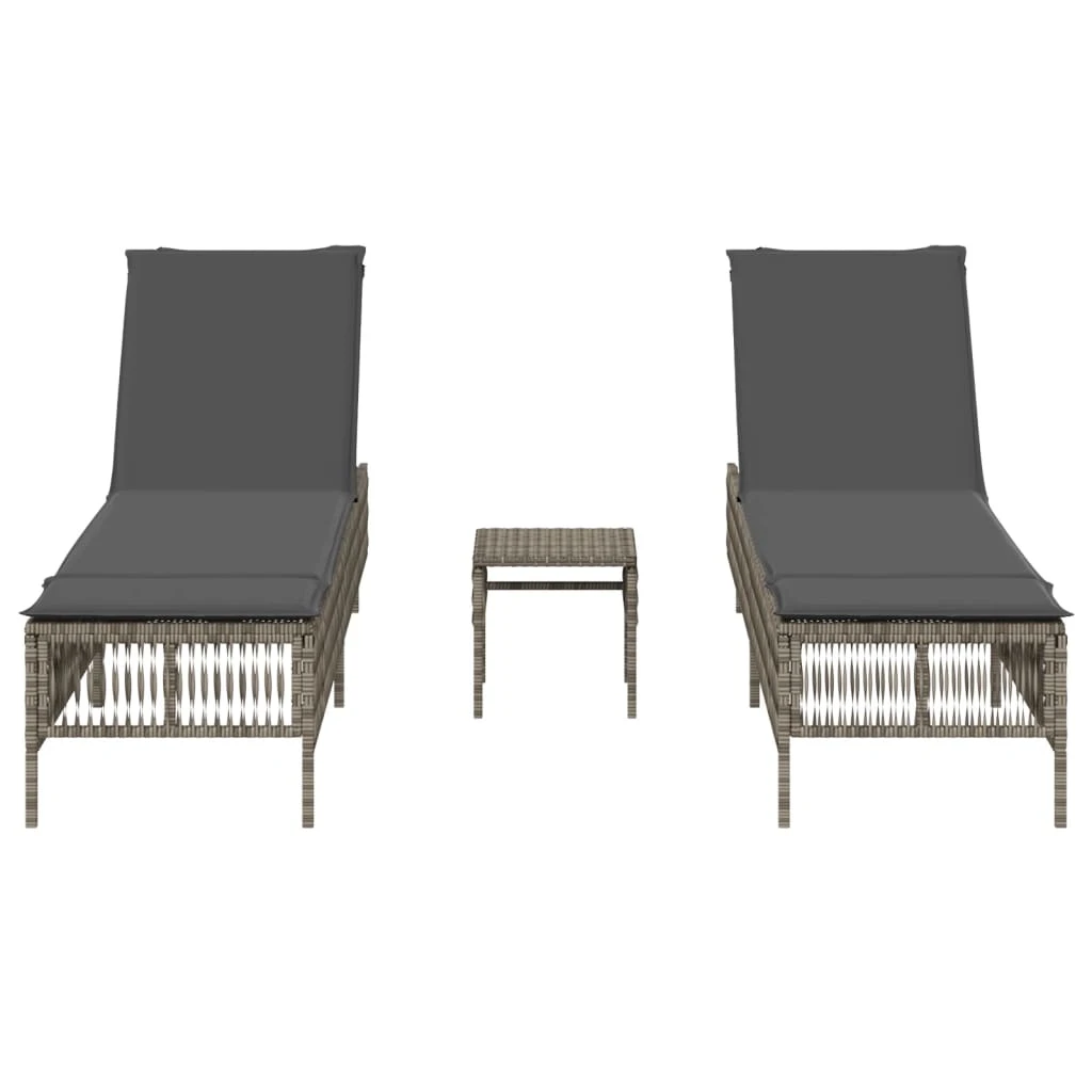 vidaXL sauļošanās zviļņi, 2 gab., ar galdu, pelēka PE rotangpalma