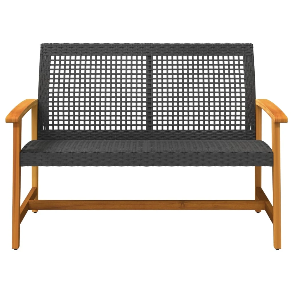 vidaXL dārza sols, 112 cm, melna PE rotangpalma, akācijas masīvkoks
