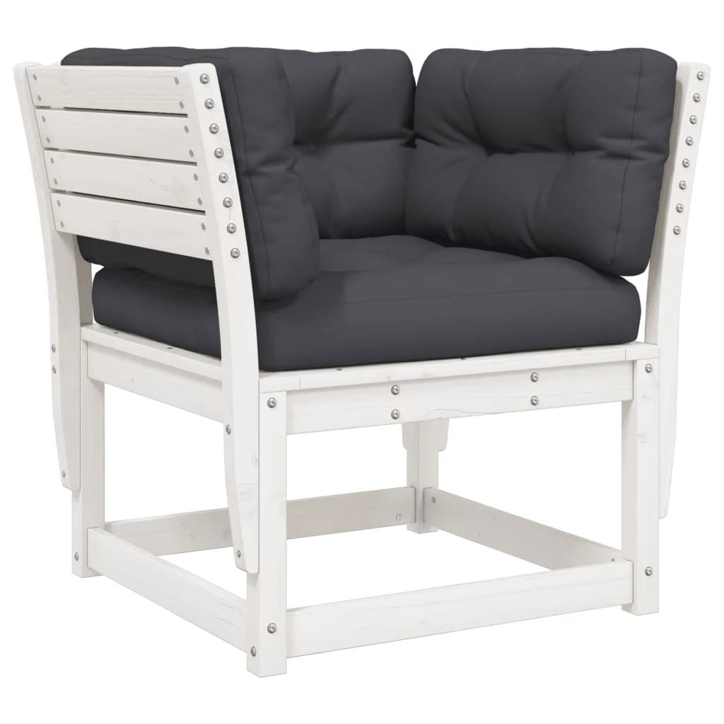 vidaXL 5-daļīgs dārza dīvānu komplekts, matrači, balts priedes koks