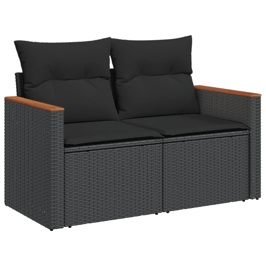 vidaXL 14-daļīgs dārza dīvāna komplekts, matrači, melna PE rotangpalma