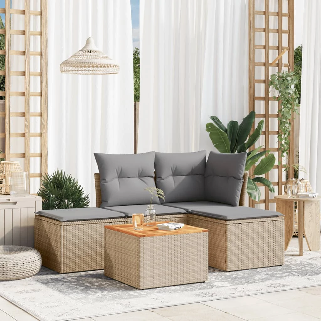 vidaXL 5-daļīgs dārza dīvāna komplekts, matrači, bēša PE rotangpalma