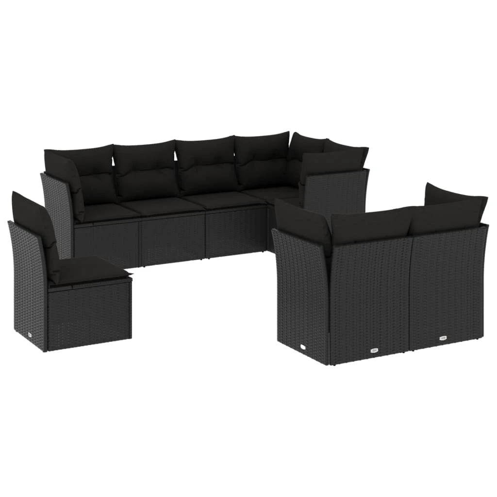 vidaXL 8-daļīgs dārza dīvāna komplekts, matrači, melna PE rotangpalma