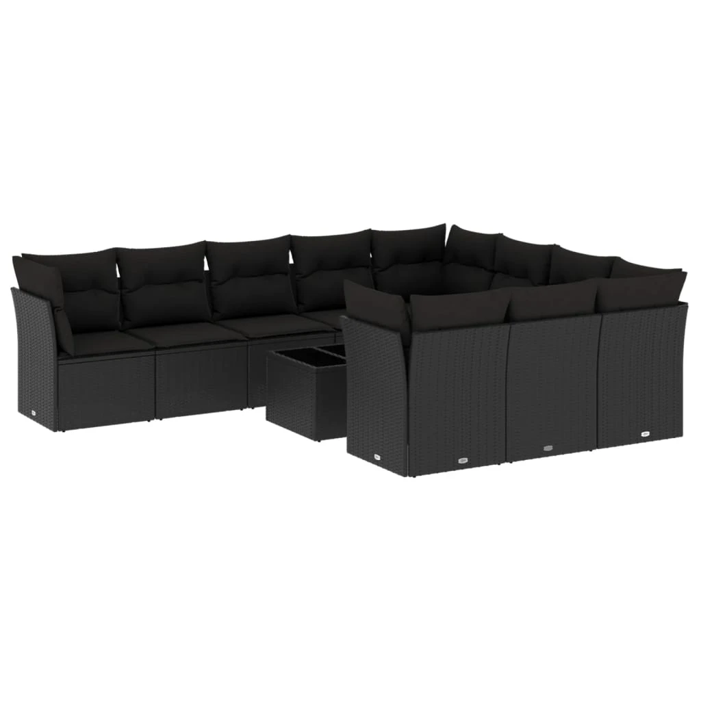 vidaXL 11-daļīgs dārza dīvāna komplekts, matrači, melna PE rotangpalma