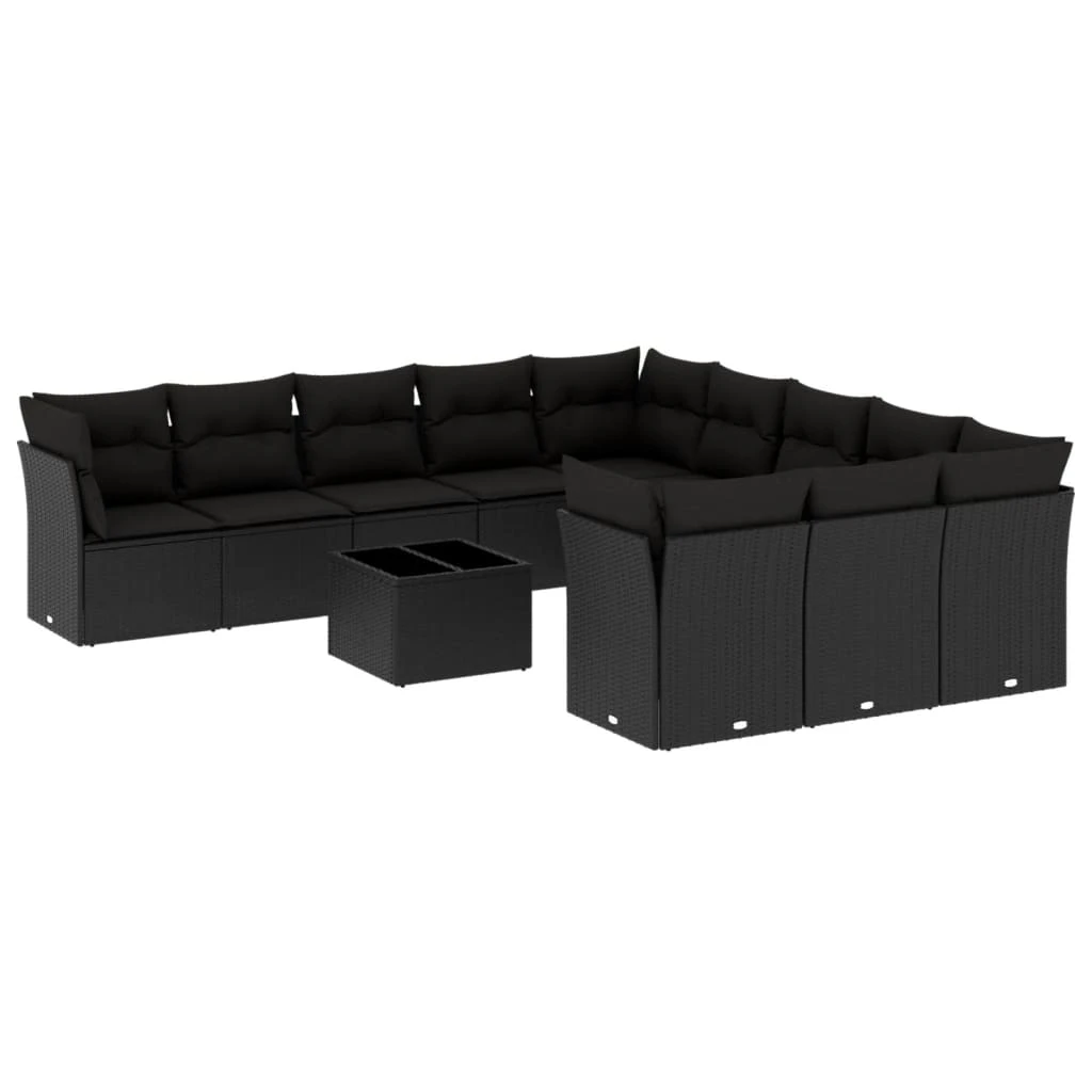vidaXL 12-daļīgs dārza dīvānu komplekts, matrači, melna PE rotangpalma