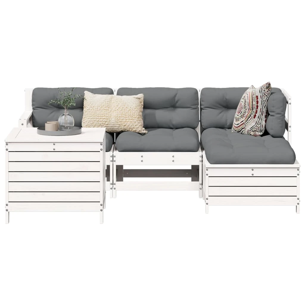 vidaXL 5-daļīgs dārza mēbeļu komplekts, priedes masīvkoks, balts