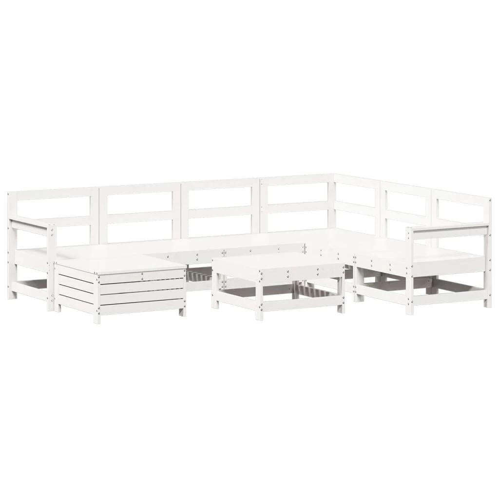 vidaXL 8-daļīgs dārza dīvānu komplekts, balts priedes masīvkoks