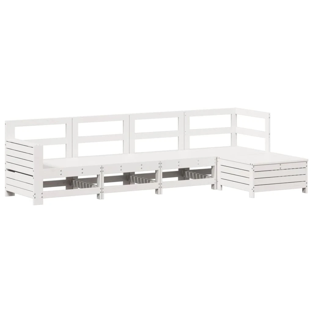 vidaXL 5-daļīgs dārza mēbeļu komplekts, priedes masīvkoks, balts