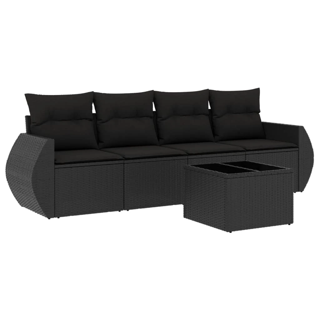 vidaXL 5-daļīgs dārza dīvāna komplekts ar matračiem, PE rotangpalma