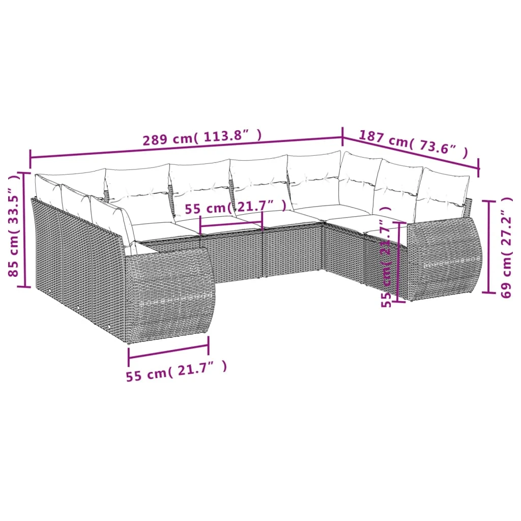 vidaXL 9-daļīgs dārza dīvāna komplekts, matrači, brūna PE rotangpalma