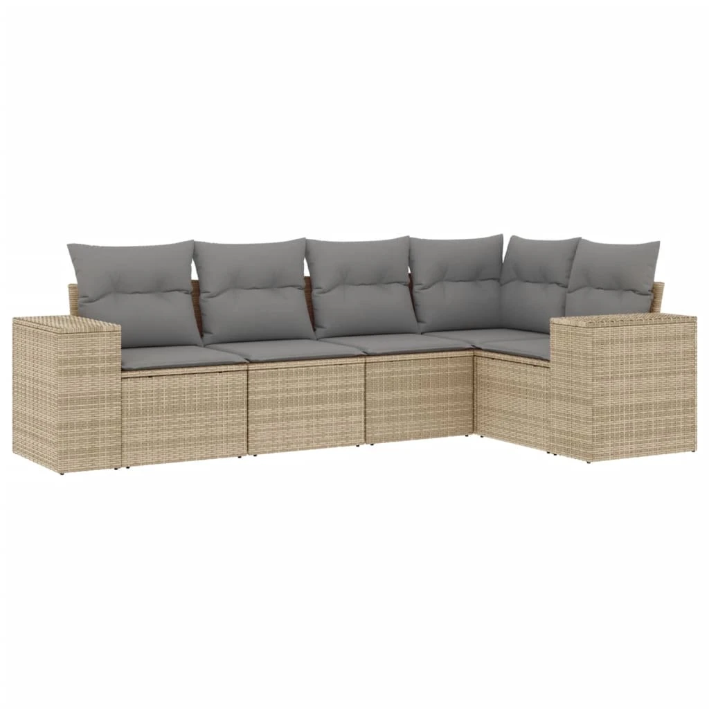 vidaXL 5-daļīgs dārza dīvāna komplekts, matrači, bēša PE rotangpalma