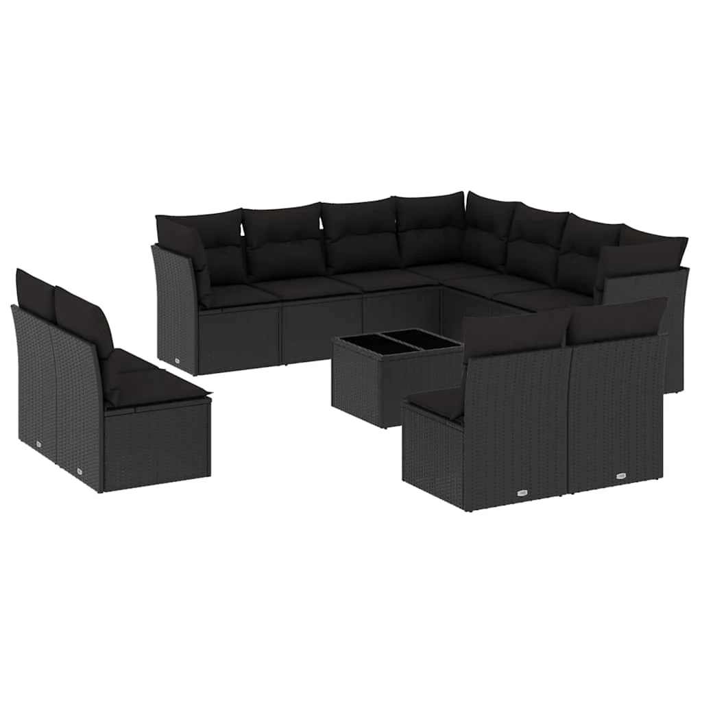 vidaXL 12-daļīgs dārza dīvānu komplekts, matrači, melna PE rotangpalma