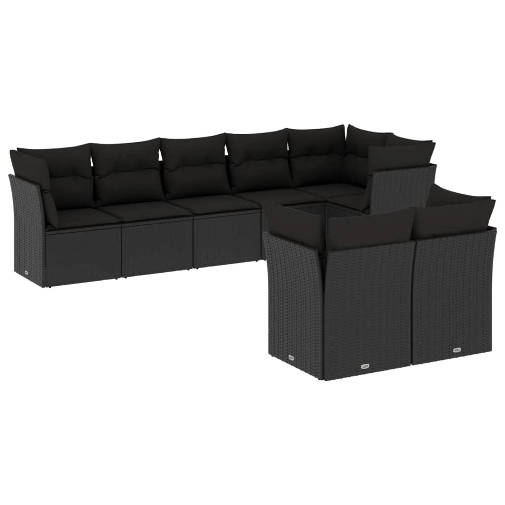 vidaXL 8-daļīgs dārza dīvāna komplekts, matrači, melna PE rotangpalma
