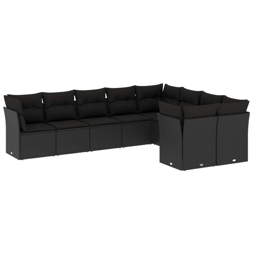 vidaXL 9-daļīgs dārza dīvāna komplekts, matrači, melna PE rotangpalma