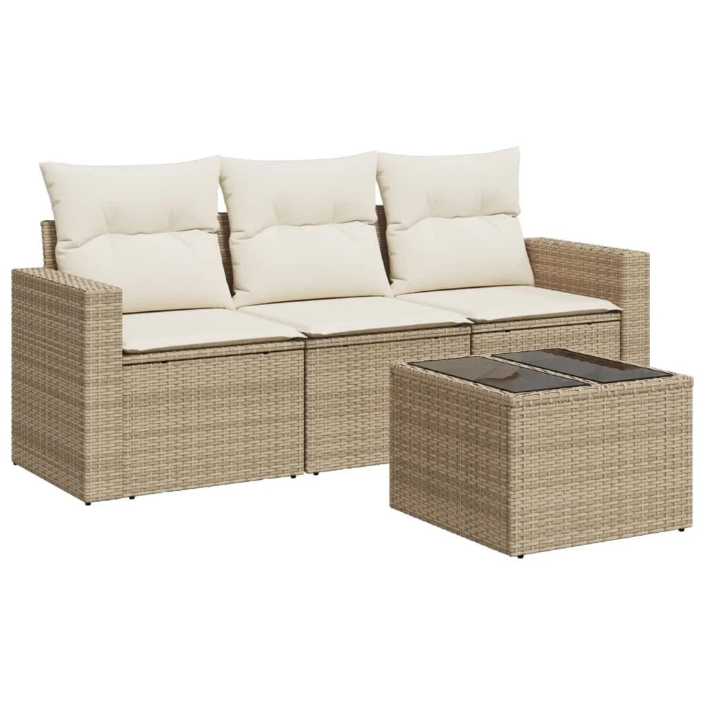 vidaXL 4-daļīgs dārza dīvāna komplekts, matrači, bēša PE rotangpalma