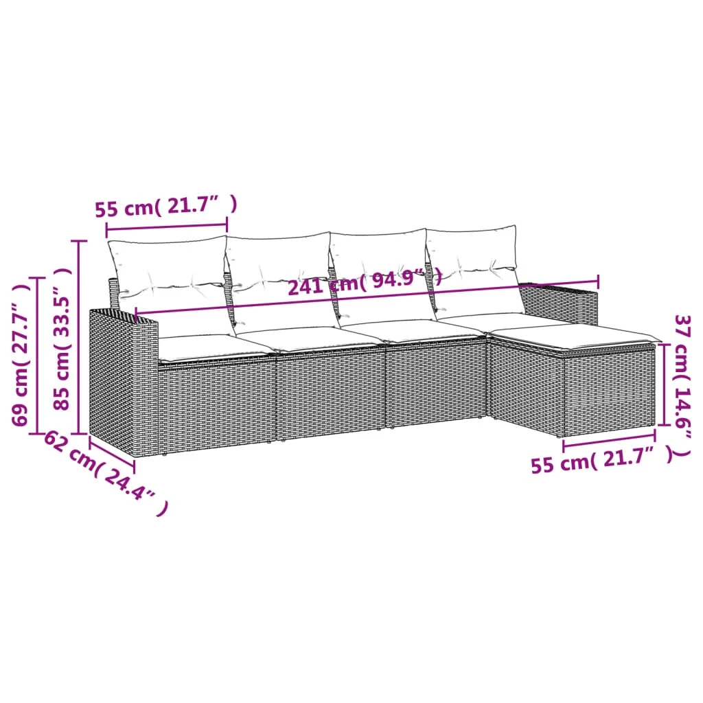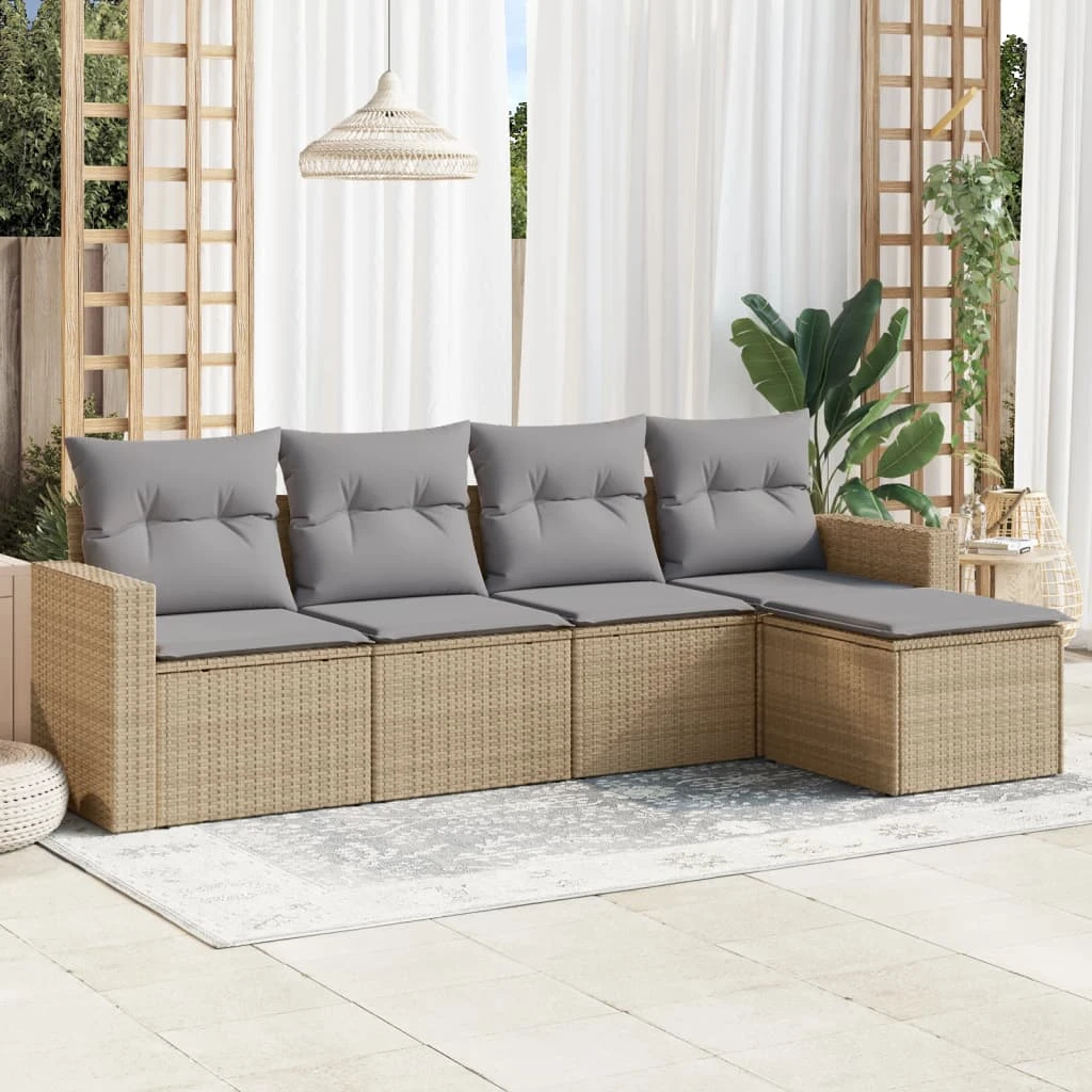 vidaXL 5-daļīgs dārza dīvāna komplekts, matrači, bēša PE rotangpalma