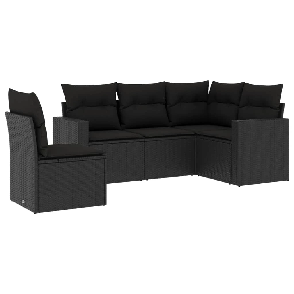 vidaXL 5-daļīgs dārza mēbeļu komplekts, matrači, melna PE rotangpalma