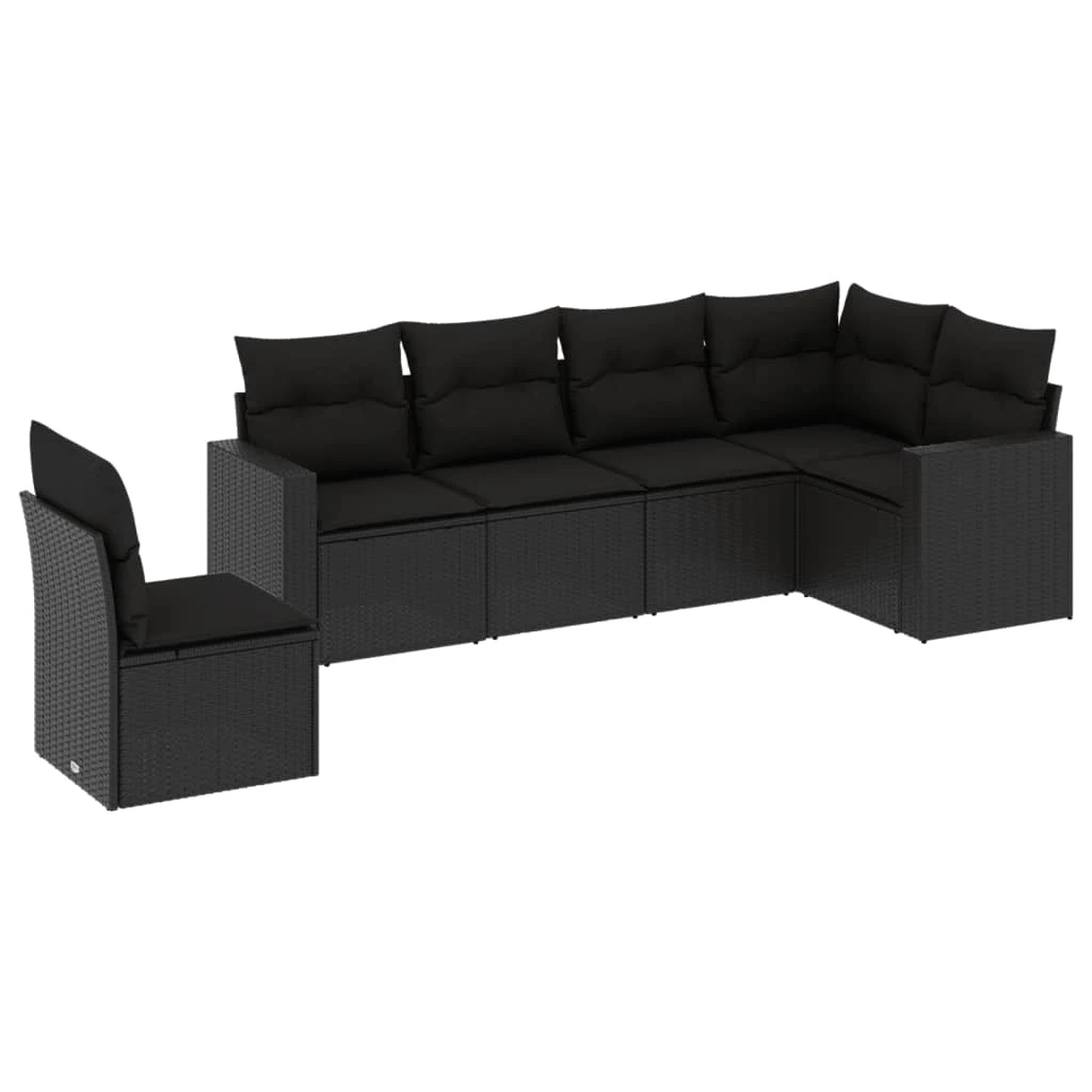 vidaXL 6-daļīgs dārza dīvāna komplekts, matrači, melna PE rotanpalma