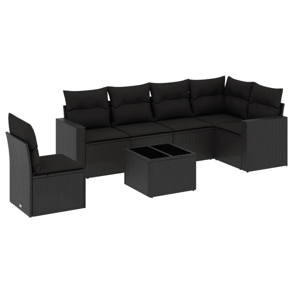 vidaXL 7-daļīgs dārza dīvāna komplekts ar matračiem, melna PE