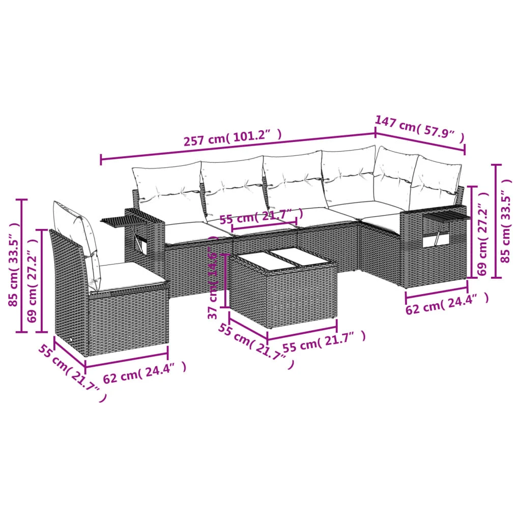 • Moduļu dizains: šim āra mēbeļu komplektam ir moduļu dizains, padarot to viegli pārvietojamu, lai jūs varētu izveidot personalizētu mēbeļu izkārtojumu.