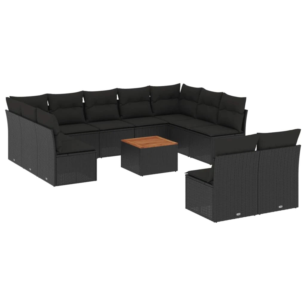 vidaXL 12-daļīgs dārza dīvānu komplekts, matrači, melna PE rotangpalma