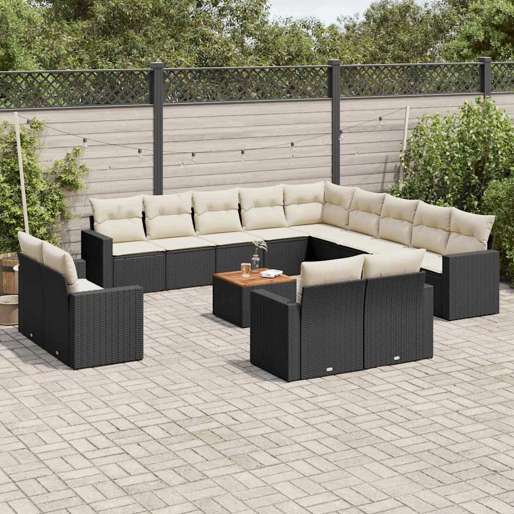 vidaXL 14-daļīgs dārza dīvāna komplekts, matrači, melna PE rotangpalma