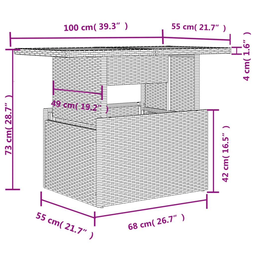 - Regulējama galda virsma: galda virsmu var pacelt, padarot galdu augstāku un pārvēršot to no kafijas galdiņa par pusdienu galdu. Tas ir lieliski piemērots viesu uzņemšanai vai maltītēm ārpus telpām.