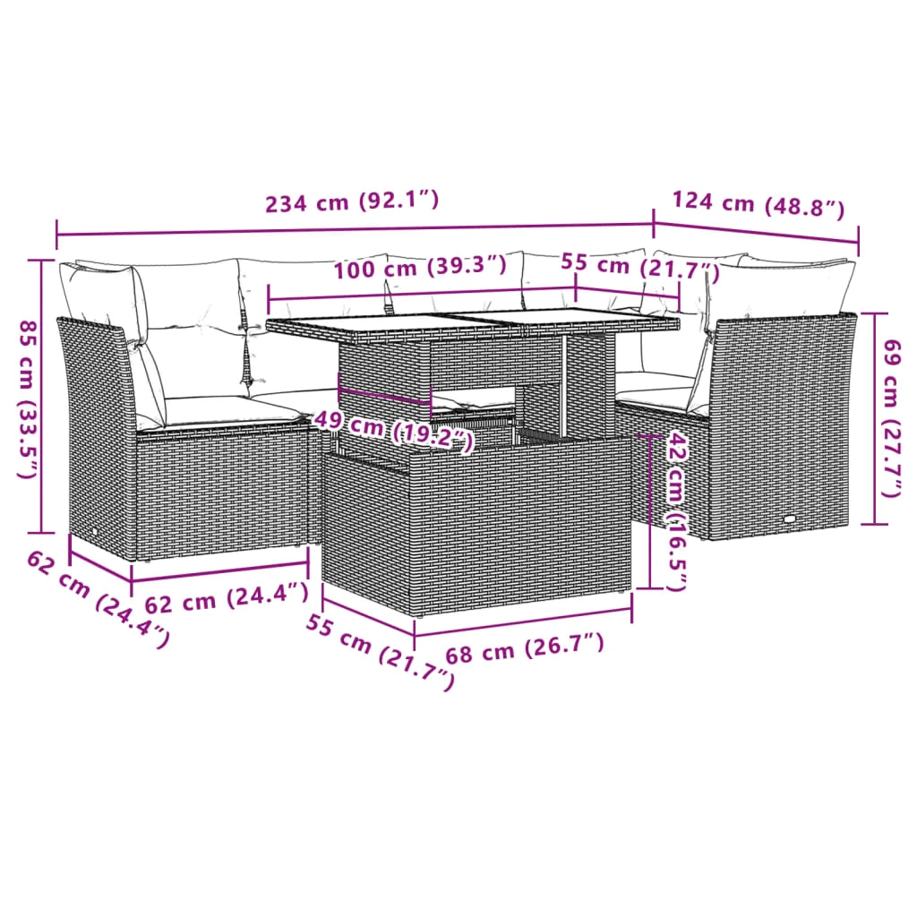 vidaXL Dārza dīvānu komplekts 7 pcs Bēša Poliūtu rotangpalma