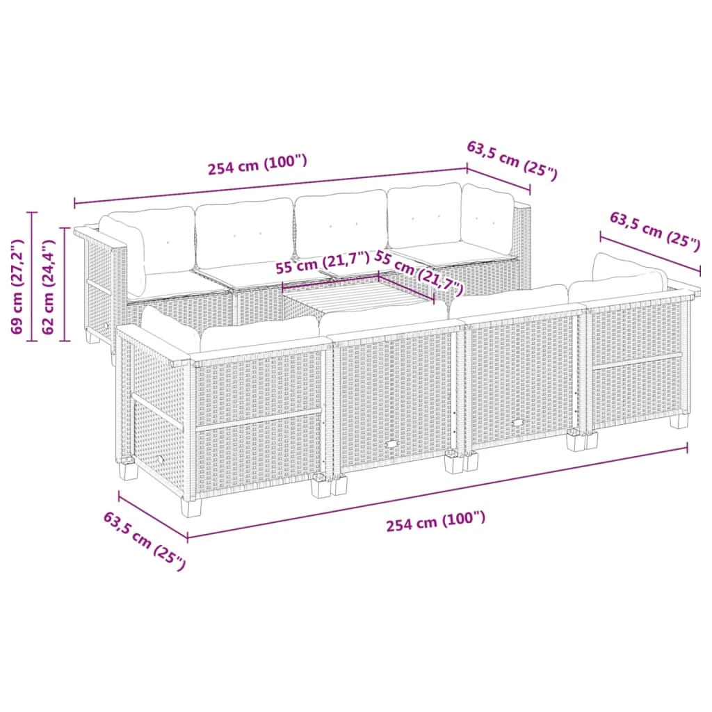 vidaXL 9-daļīgs dārza dīvāna komplekts ar matračiem, pelēks PE pinums