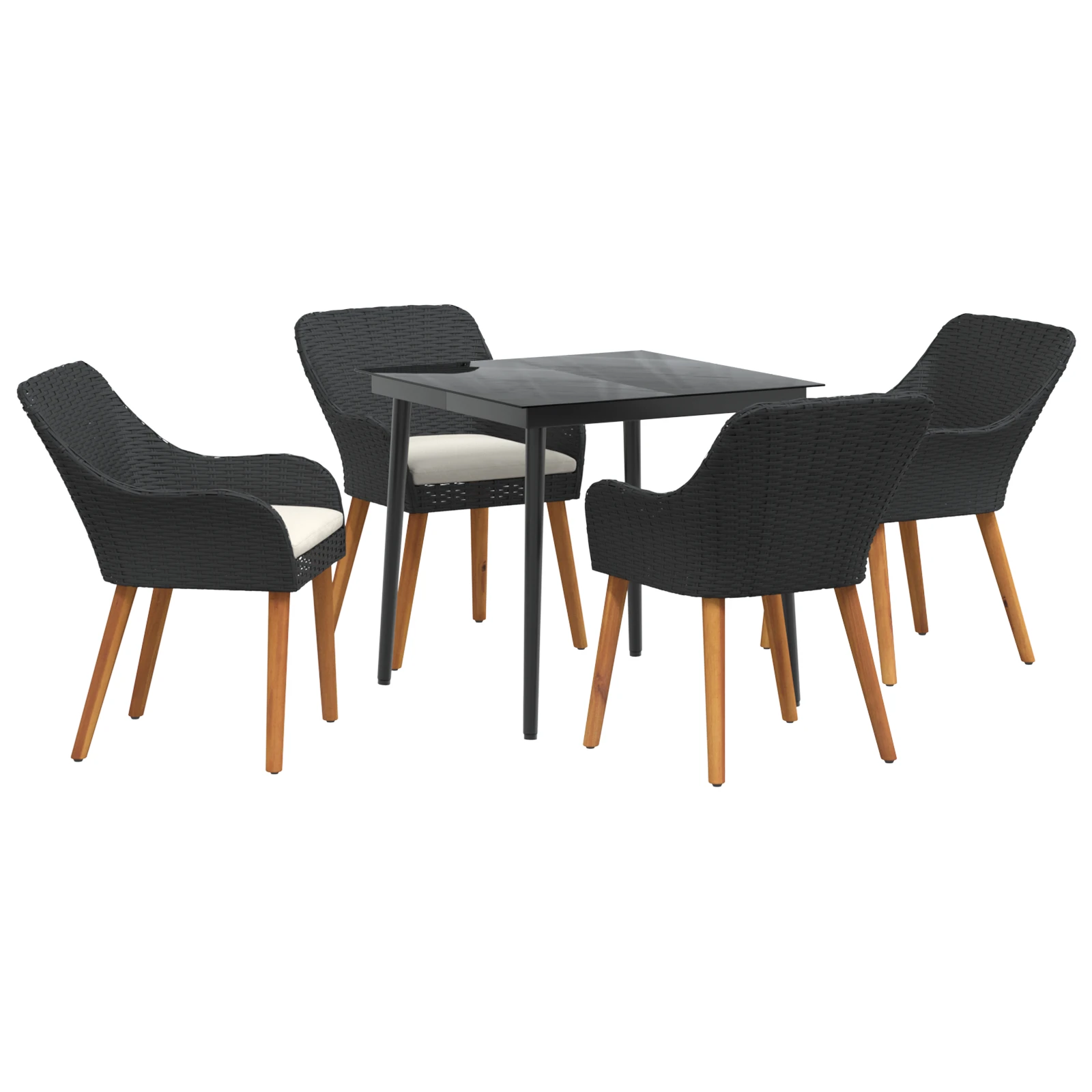 vidaXL Dārza ēdamgalds ar spilvenu 5 pcs Melna poliratāns