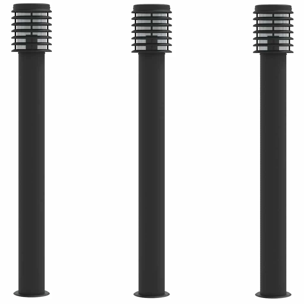 vidaXL āra zemes lampas, 3 gb., melnas, 110 cm, nerūsējošs tērauds