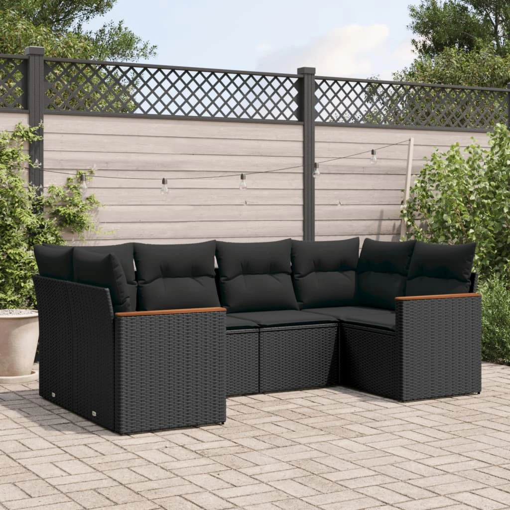 vidaXL 6-daļīgs dārza dīvāna komplekts, matrači, melna PE rotanpalma