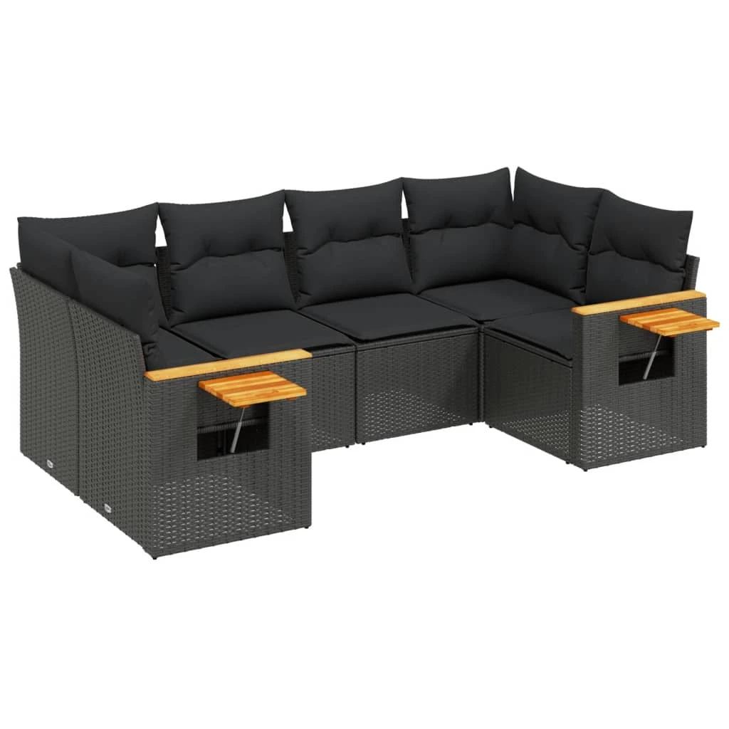 vidaXL 6-daļīgs dārza dīvāna komplekts, matrači, melna PE rotanpalma