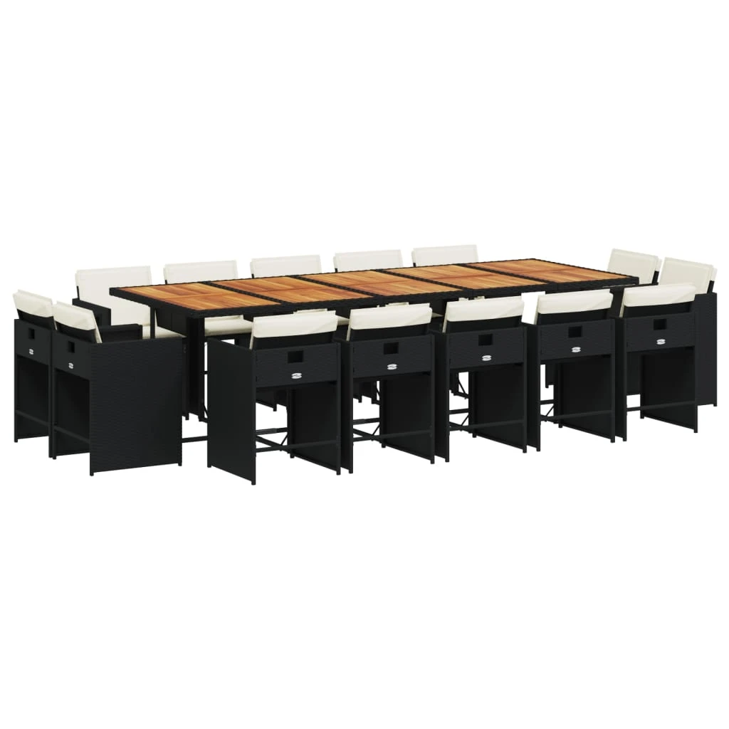 vidaXL 15-daļīgs dārza mēbeļu komplekts ar matračiem, melns PE