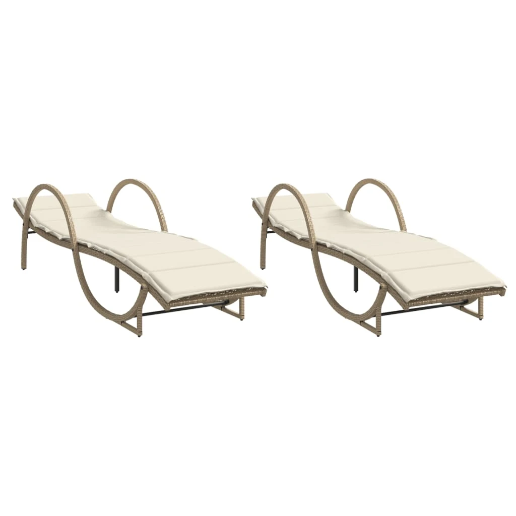 vidaXL sauļošanās zviļņi, 2 gab., ar matračiem, bēša PE rotangpalma