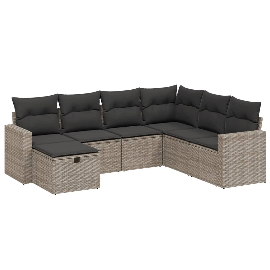 vidaXL 7-daļīgs dārza dīvāna komplekts, matrači, pelēka PE rotangpalma
