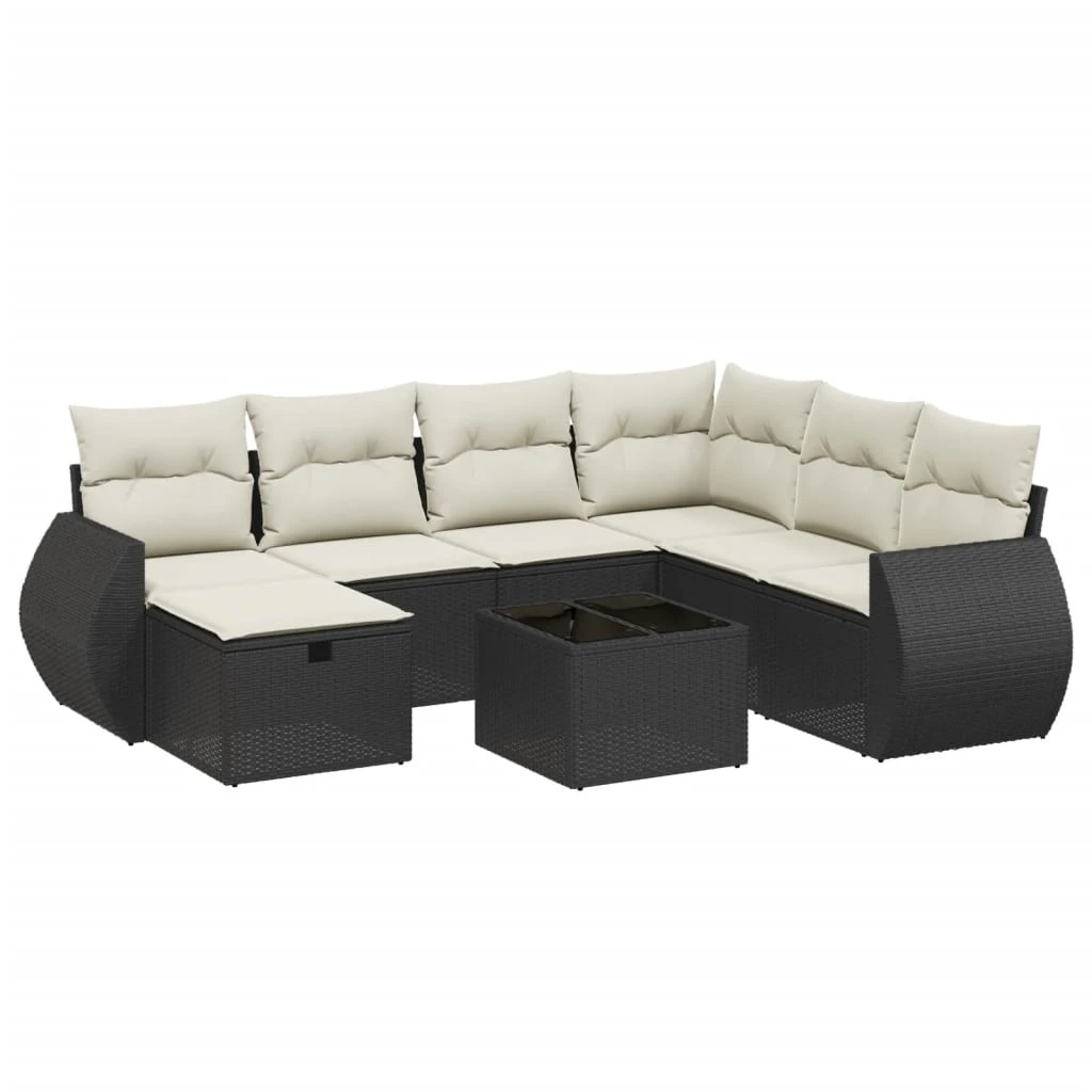 vidaXL 8-daļīgs dārza dīvāna komplekts, matrači, melna PE rotangpalma