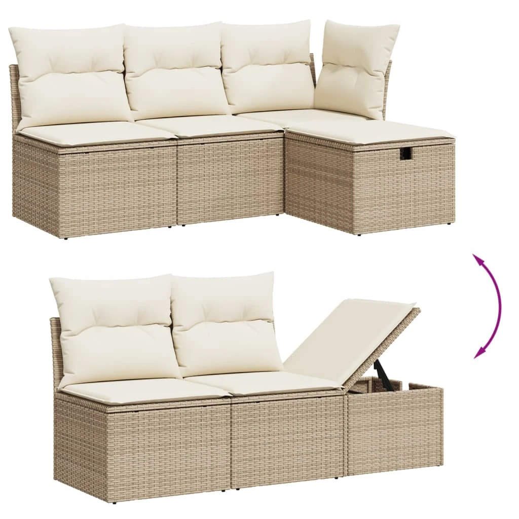 vidaXL 7-daļīgs dārza dīvāna komplekts, matrači, bēša PE rotangpalma