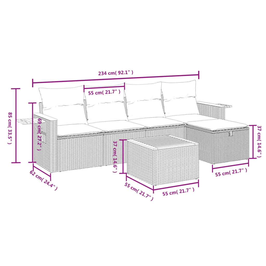 vidaXL 6-daļīgs dārza dīvāna komplekts, matrači, bēša PE rotangpalma
