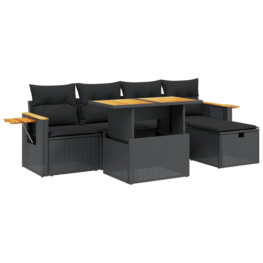 vidaXL 6-daļīgs dārza dīvāna komplekts, matrači, melna PE rotanpalma