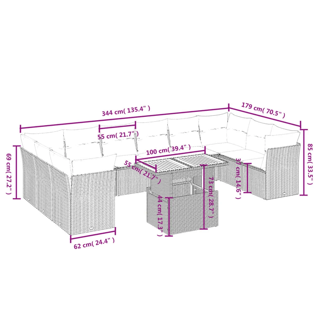 vidaXL 11-daļīgs dārza dīvāna komplekts ar matračiem,PE rotangpalma