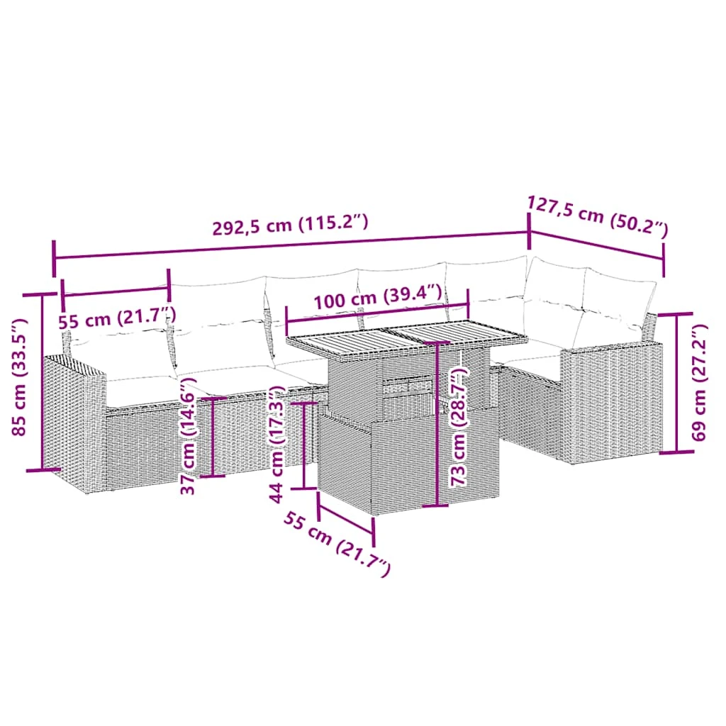vidaXL 7-daļīgs dārza dīvāna komplekts, matrači, bēša PE rotangpalma