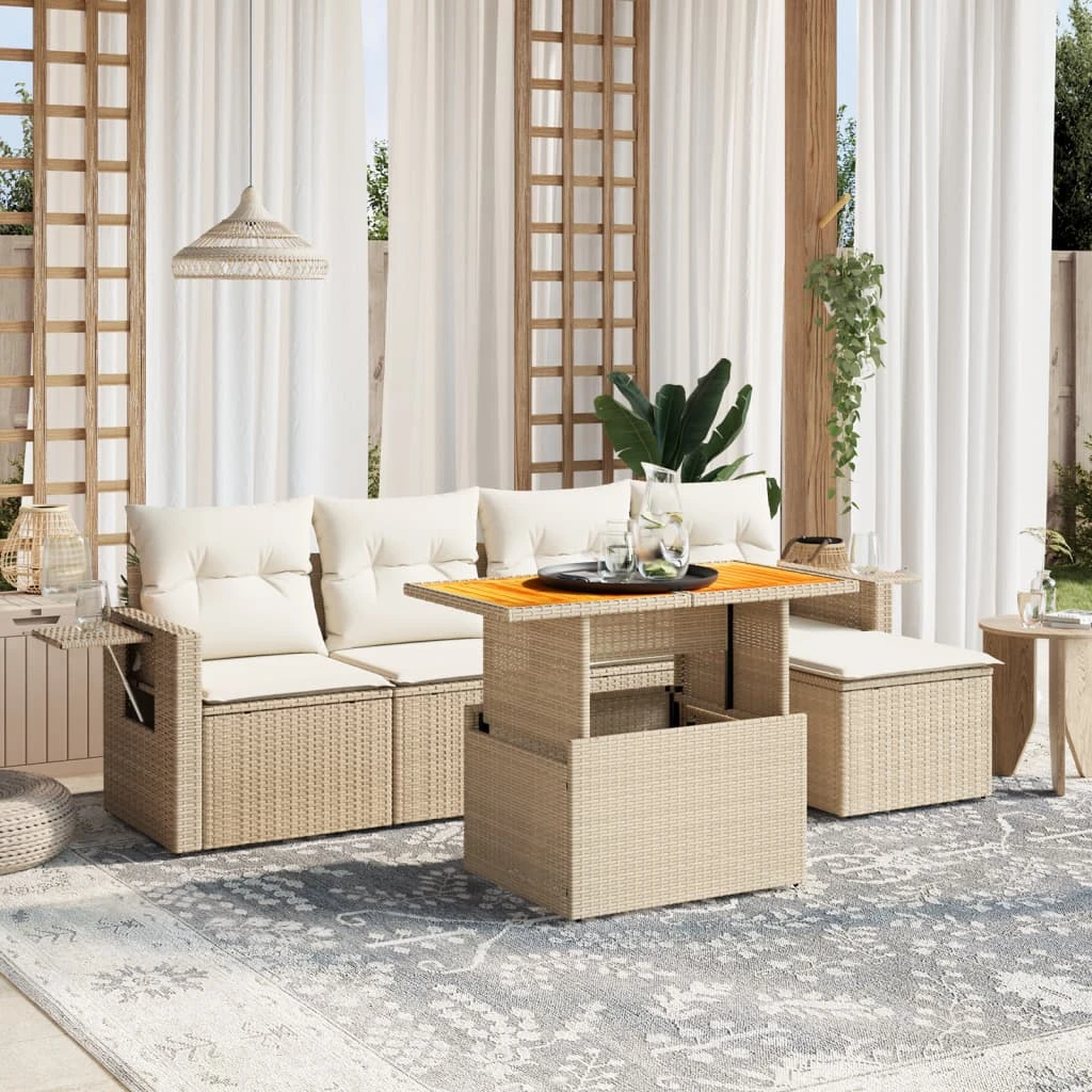 vidaXL 6-daļīgs dārza dīvāna komplekts, matrači, bēša PE rotangpalma