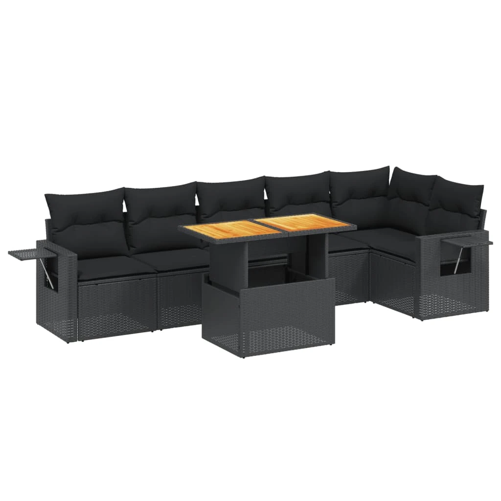 vidaXL 7-daļīgs dārza dīvāna komplekts ar matračiem, melna PE