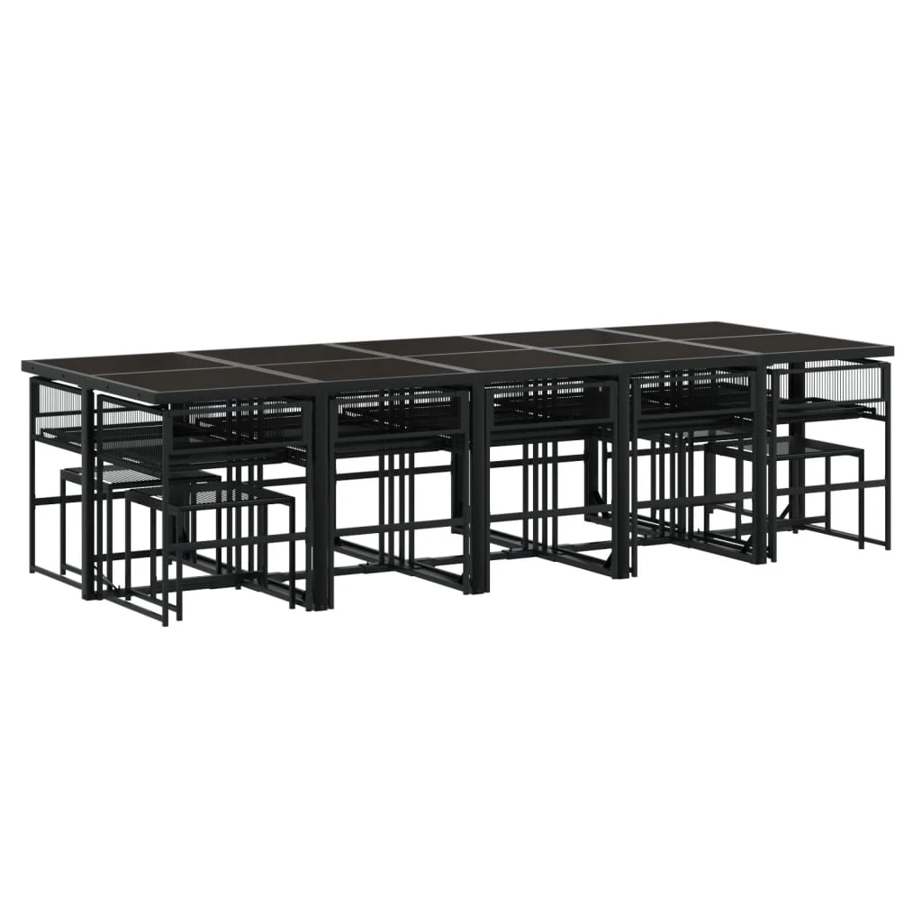 vidaXL 15-daļīgs dārza mēbeļu komplekts, melna PE rotangpalma