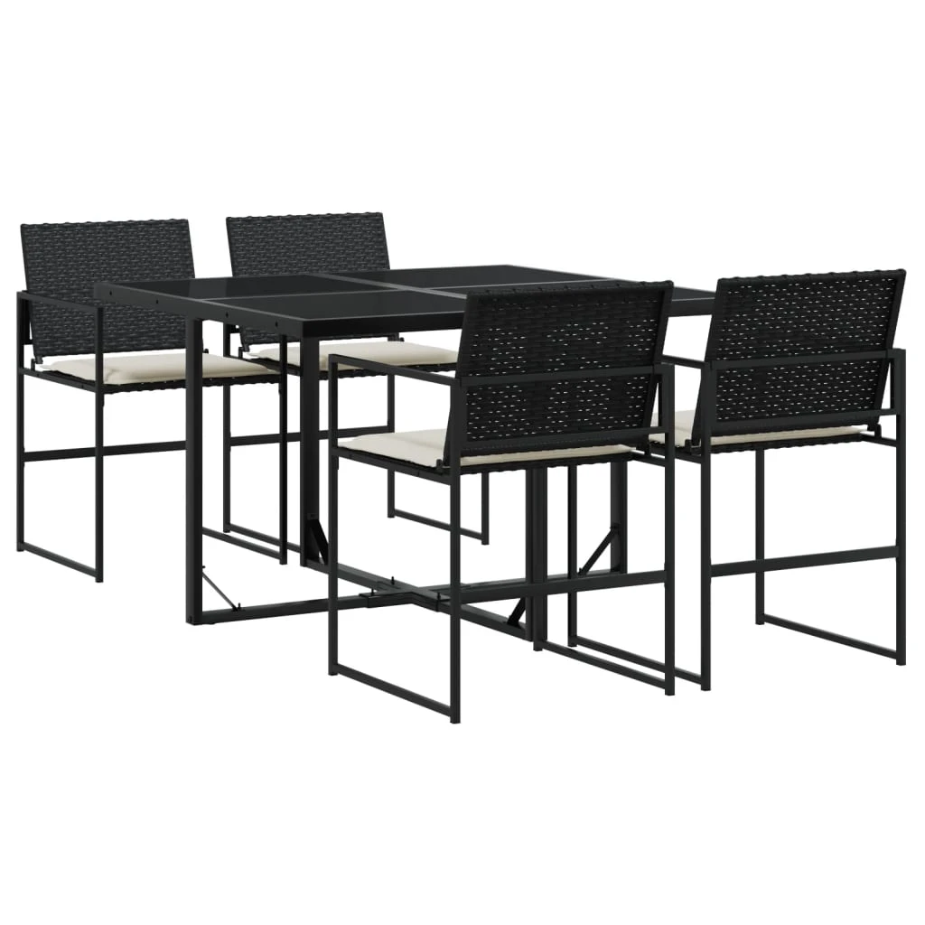 vidaXL 5-daļīgs dārza mēbeļu komplekts, matrači, melna PE rotangpalma