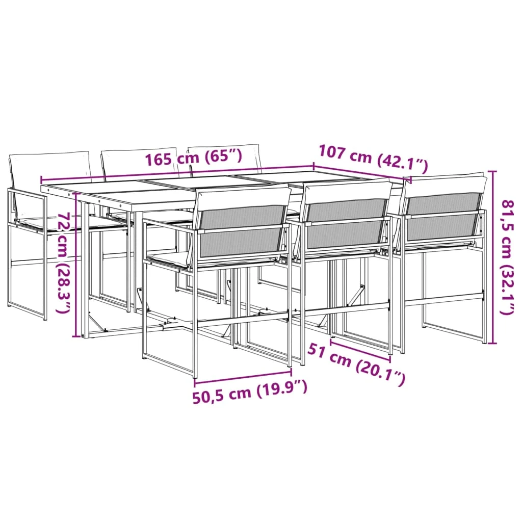 vidaXL 7-daļīgs dārza mēbeļu komplekts ar matračiem, melns tekstilēns
