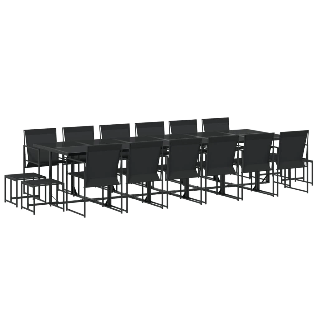 vidaXL 17-daļīgs dārza mēbeļu komplekts, melns tekstilēns