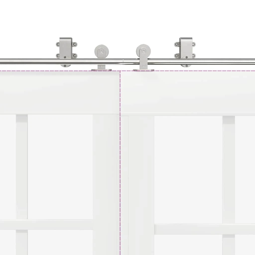 Izmantojot šo bīdāmo durvju aparatūras komplektu, varat viegli iestatīt dubultās sliedes, lai durvju pāris varētu slīdēt viena otrai priekšā un aiz muguras.