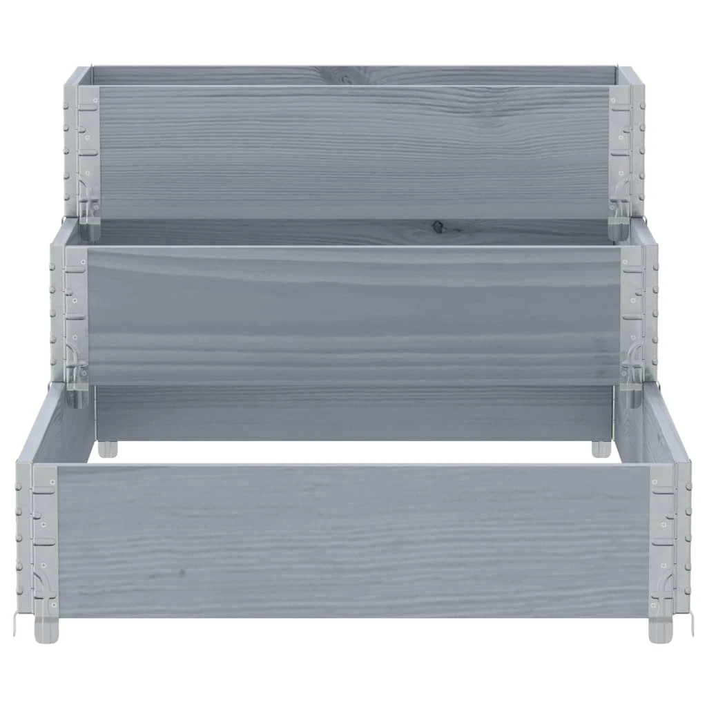 vidaXL 3-līmeņu puķu kaste, pelēka, 120x80 cm, priedes masīvkoks