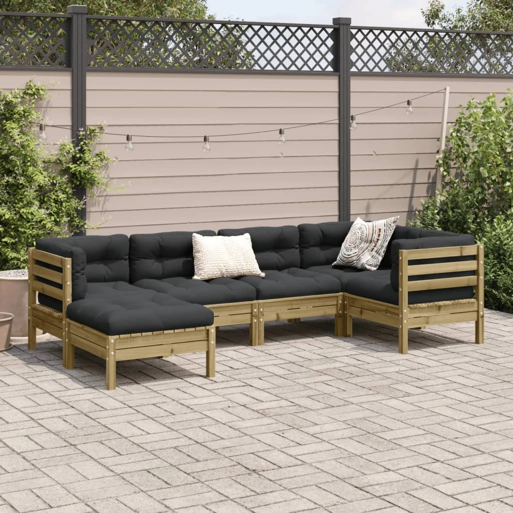 vidaXL 6-daļīgs dārza dīvāna komplekts ar matračiem, priede